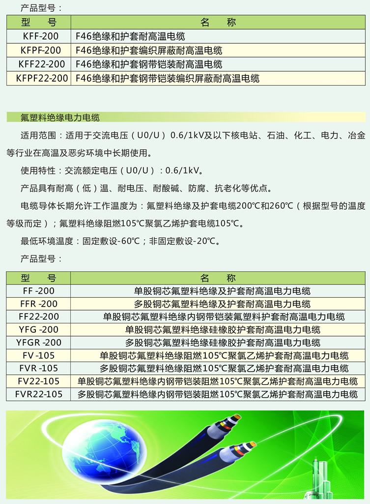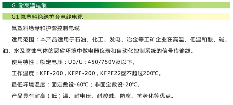二、使用范圍 本產品適用于高溫環境下額定電壓450/750v及以下控制、信號、保護及測量系統接線之用。