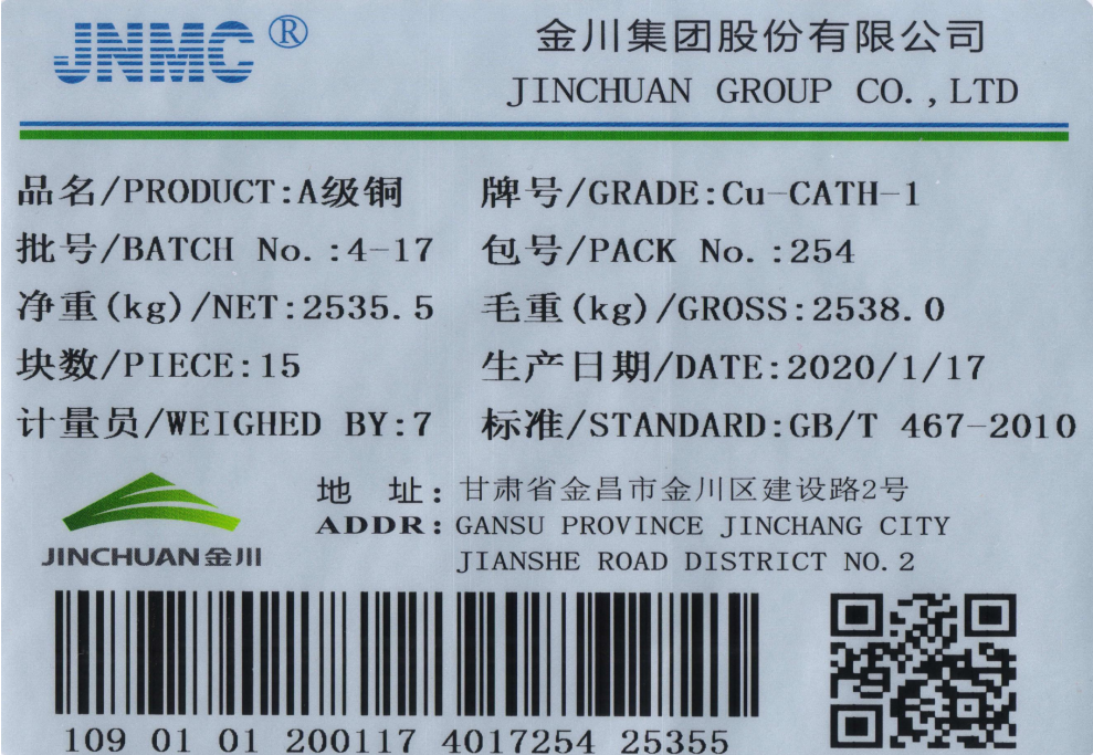 金川集團(tuán)兩個(gè)A級(jí)銅品牌成為上期能源首批國際銅期貨交割商品